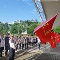 他们迈着矫健的步伐向我们走来,他们的旗帜飘扬,英姿飒爽,昂首挺胸