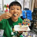 我们每人手里都拿着一块月饼,望着连颗星星都没有的夜空发呆。好像没有月亮,手中的月饼就难以下咽。过了好久,直到快睡觉时,我打破了周围的宁静。“也不能一直等呀,不如咱们一起画个月亮!”伙伴们顿时打起了精神。有人搬画板,有人拿粉笔,当然是我画啦!我抓起粉笔在画板上画了一个歪歪扭扭的圆。潦潦草草地涂完了色,把画板放在用凳子垒成的“小房子”上。