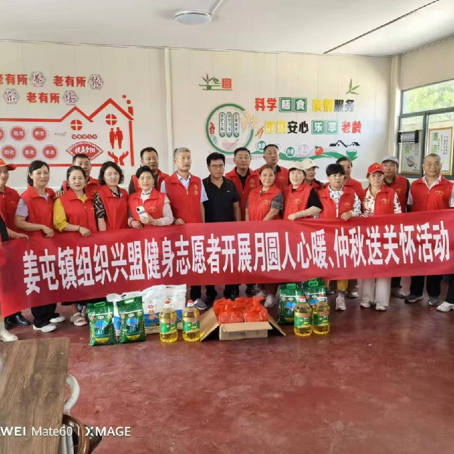 姜屯镇文化站携手兴盟健身志愿者开展月圆人心暖、仲秋送关怀活动